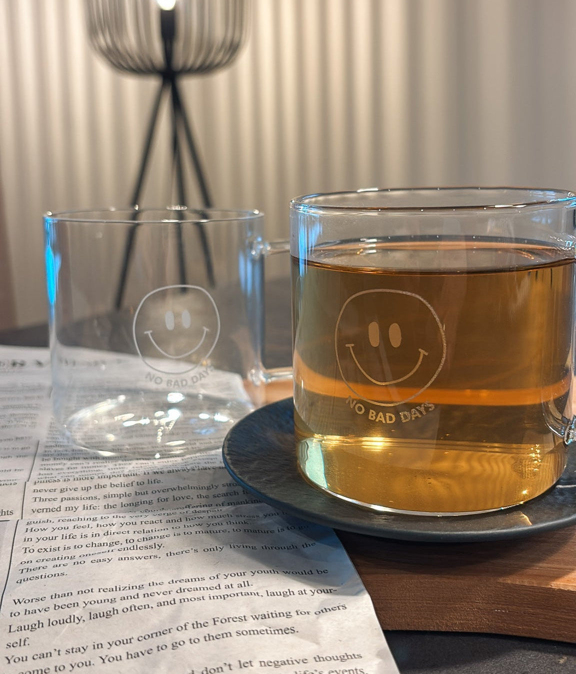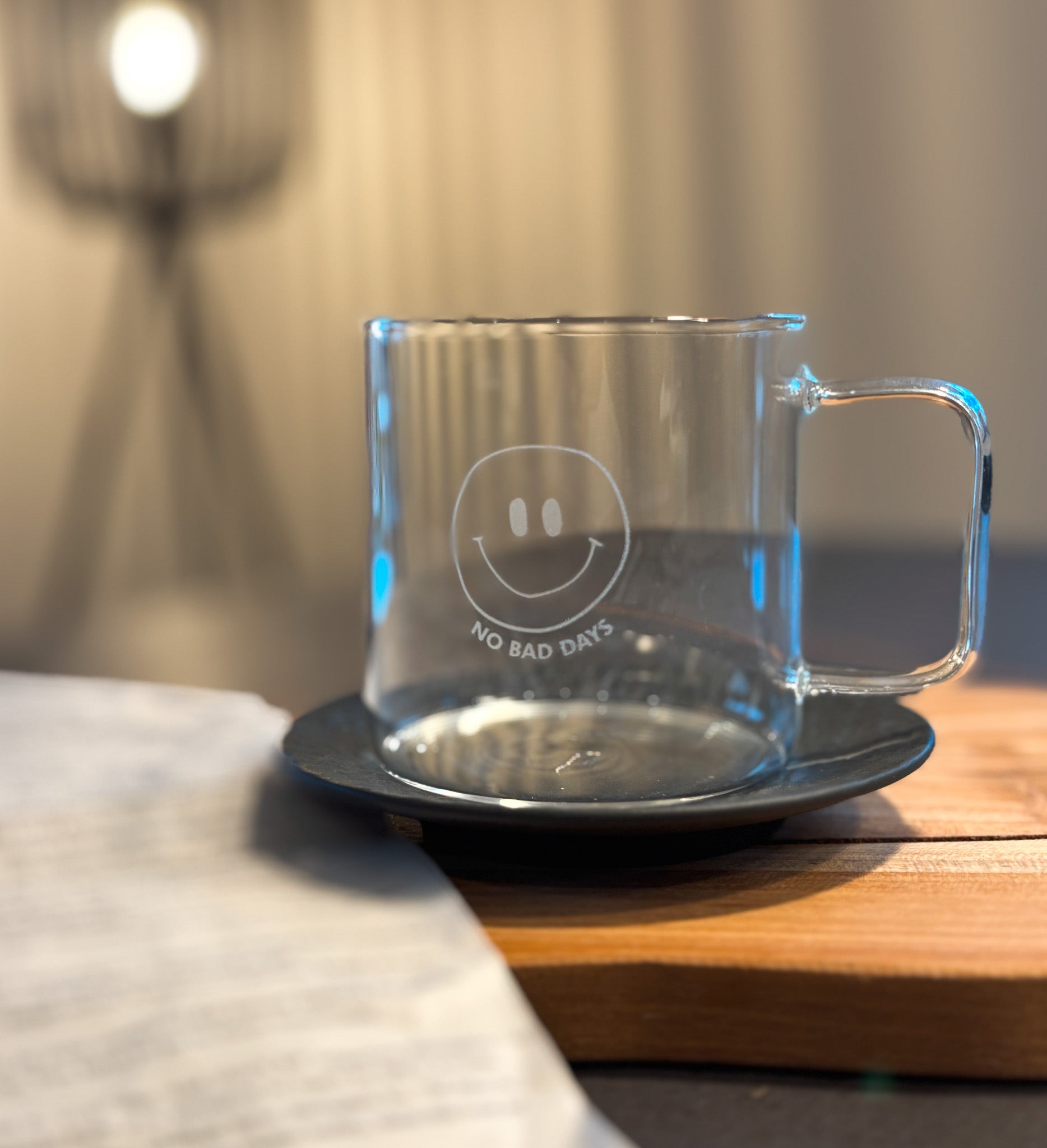 Das glänzende Glas trifft auf eine matte Gravur - minimalistisch & zeitlos und damit ein Must-Have für alle Skandi-Lover. Durch den Henkel können auch heiße Getränke, wie Kaffee oder Tee, problemlos genossen werden.